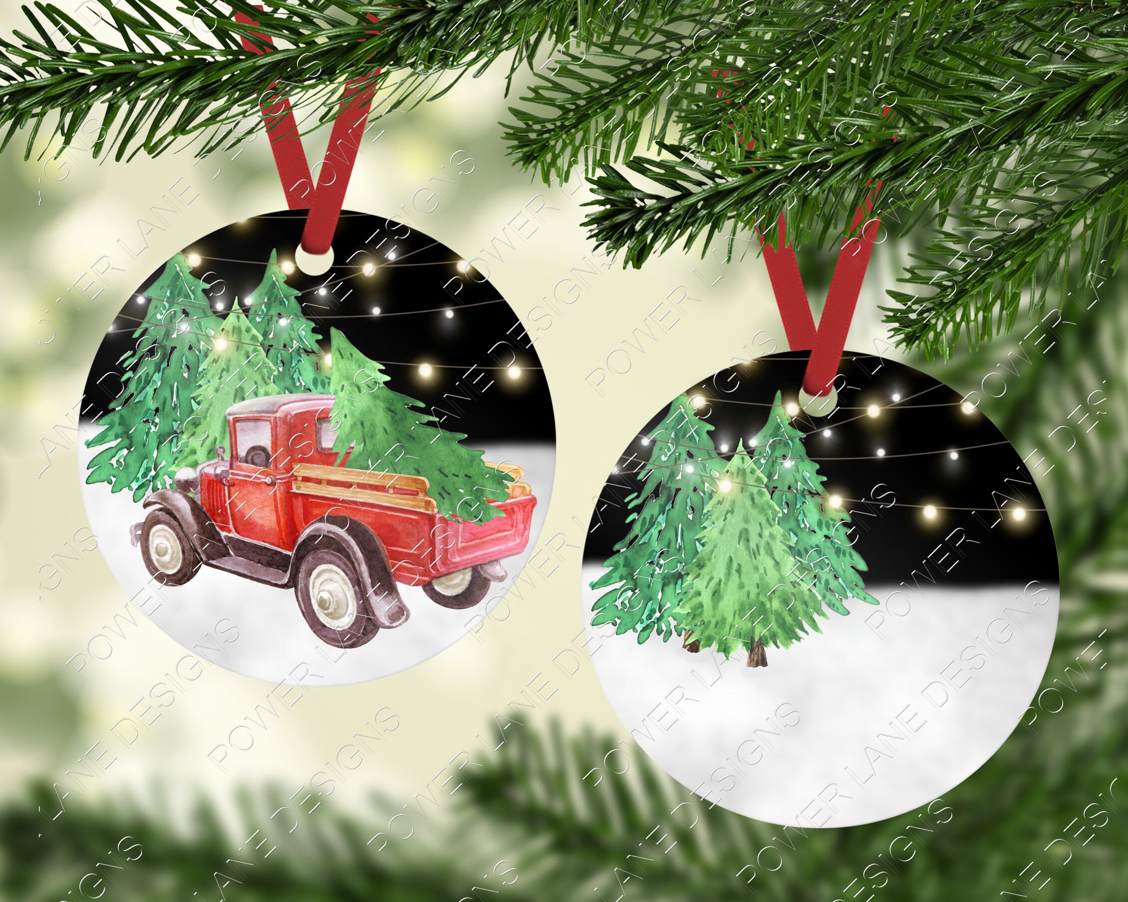 Christmas Vintage Farm Truck Red 3 Round Ornament Etsy Canada